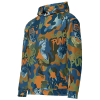 What if Pompeii's marble mosaics-those swirling acanthus leaves and cracked laurel wreaths-got dragged through an orange-leaf apocalypse? That's what this hoodie looks like. Full all-over print: empire-level chaos in fall camo, like Rome tripped on cider and kept walking. You'll ghost every room, but everyone will still stare. It's 95–96% recycled poly (US or EU-made), brushed fleece inside soft enough to sleep in, relaxed unisex fit that swallows your body like mercy. Double-lined hood with drawstrings, overlock seams, no itchy tags unless you want one. Fabric weight 9 oz.-feels like a cloud, prints like sacrilege. Made-to-order. Wear it, let the ghosts blend.